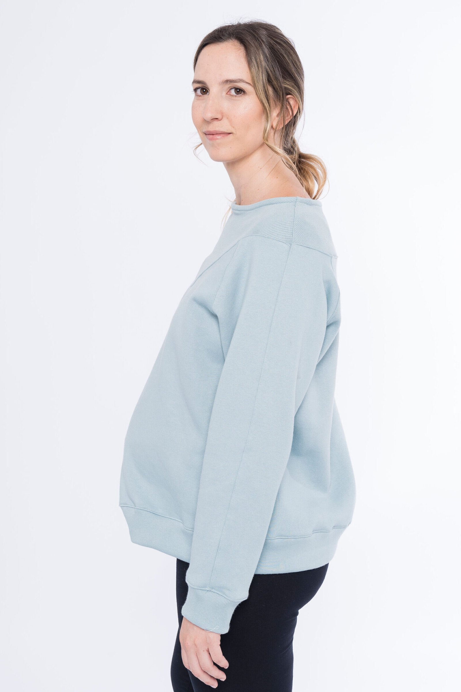 Buzo cuello redondo tejido con punto jersey con terminaciones de rib en escote,puños y cintura.