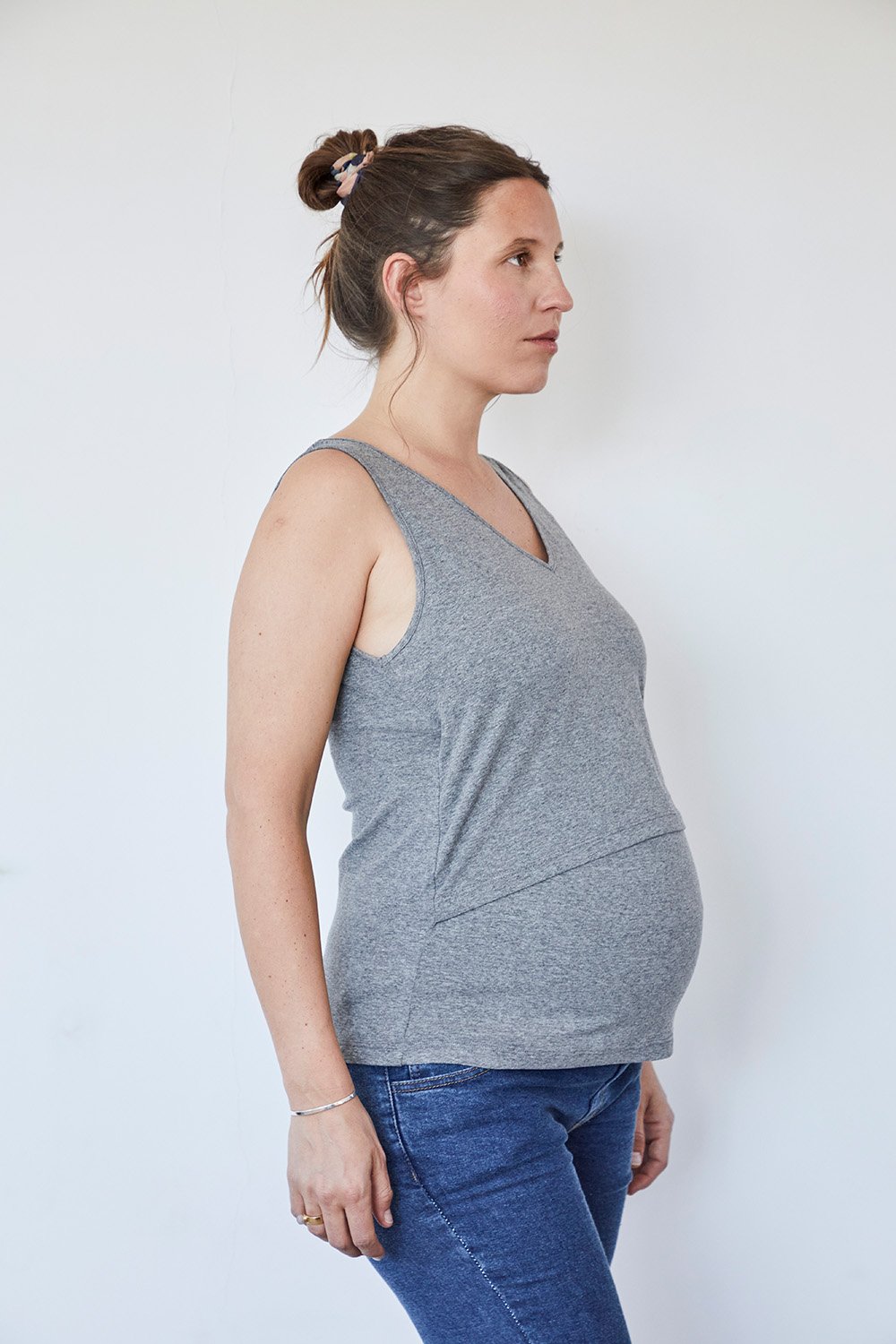 La musculosa Serenidad es un básico indiscutible hecha en jersey de algodón de calce al cuerpo con breteles anchos cuenta con abertura oculta bajo el busto para facilitar la lactancia. Posee escote en V en delantero y escote abierto en espalda.