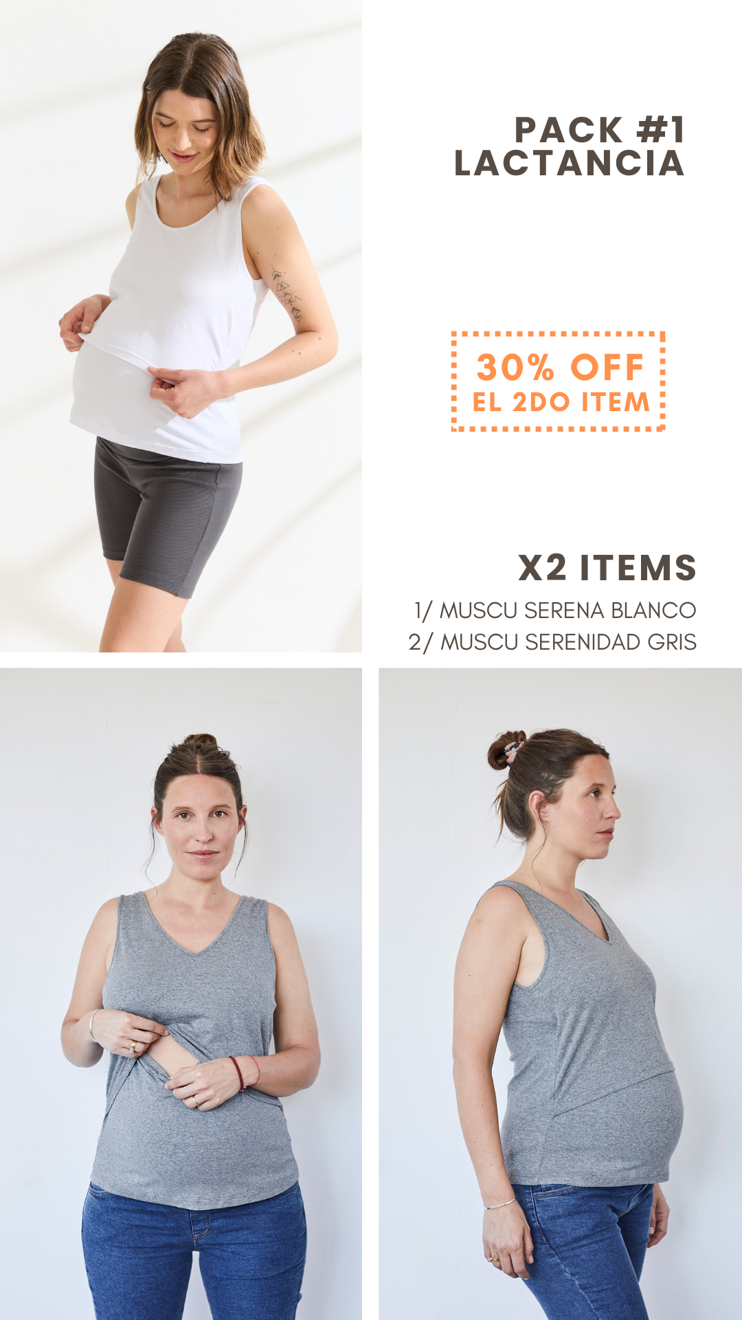Musculosa con abertura bajo el busto para facilitar la lactancia.