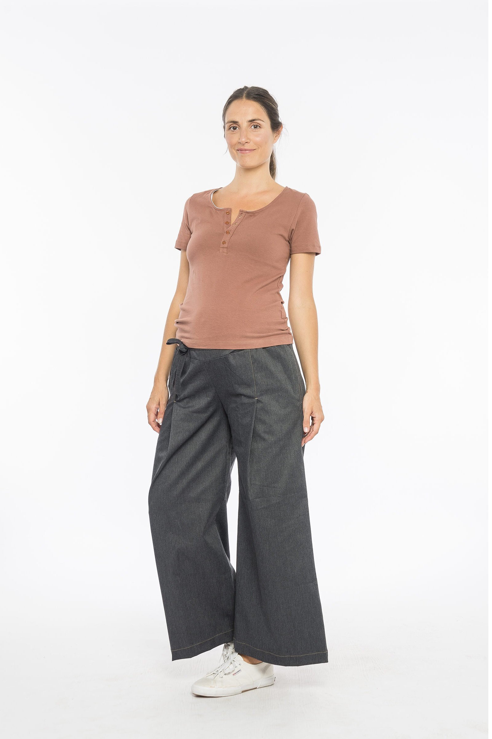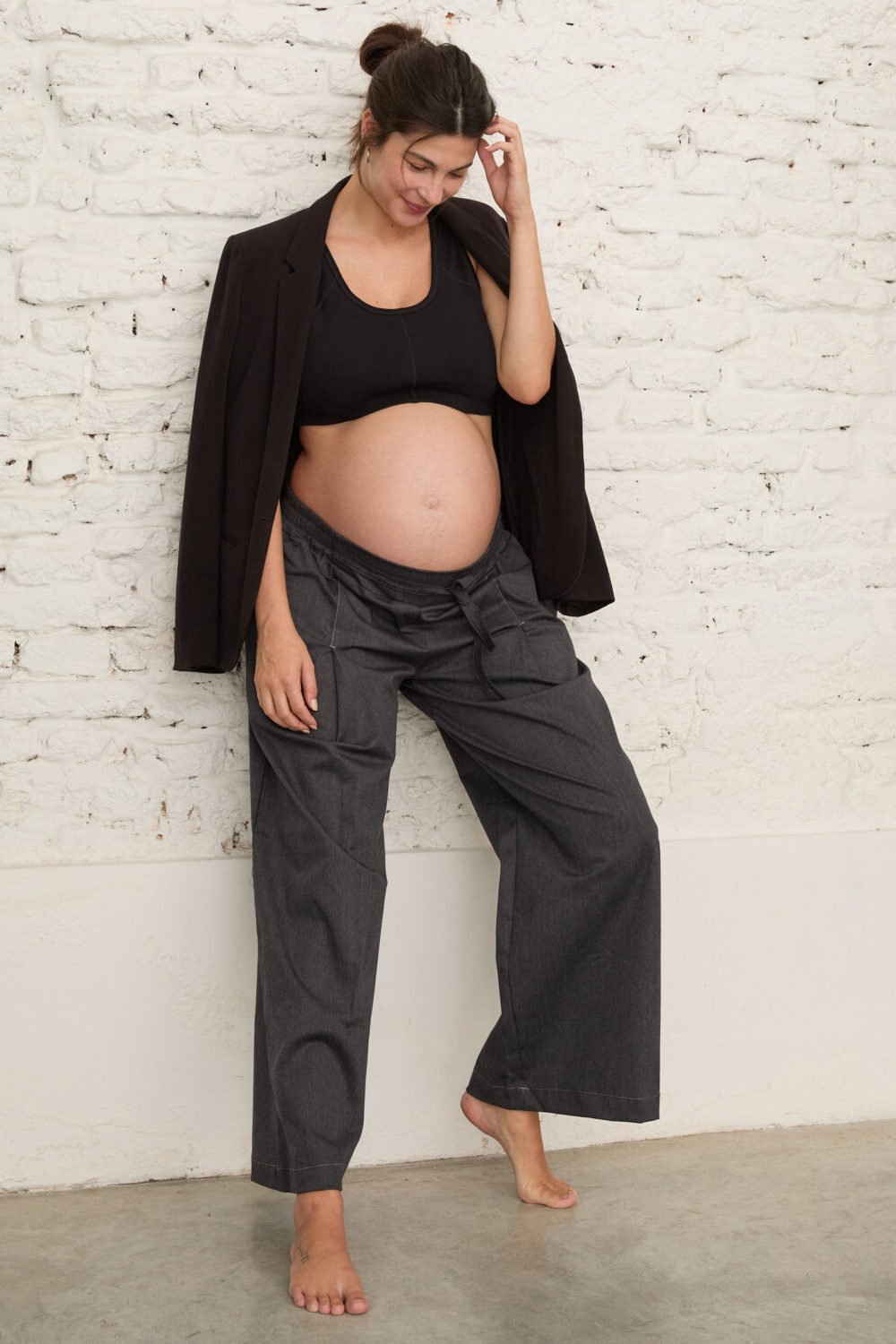 Pantalón sastrero tiro medio confeccionado en gabardina elastizada, con pinzas delanteras, su cintura es regulable con elástico en espalda y mediante tiras regulables en delantero, bolsillos laterales. Su calce es relajado y piernas anchas.