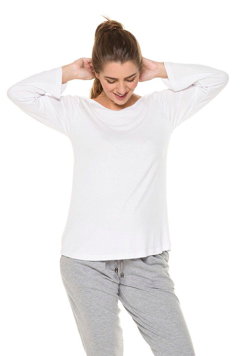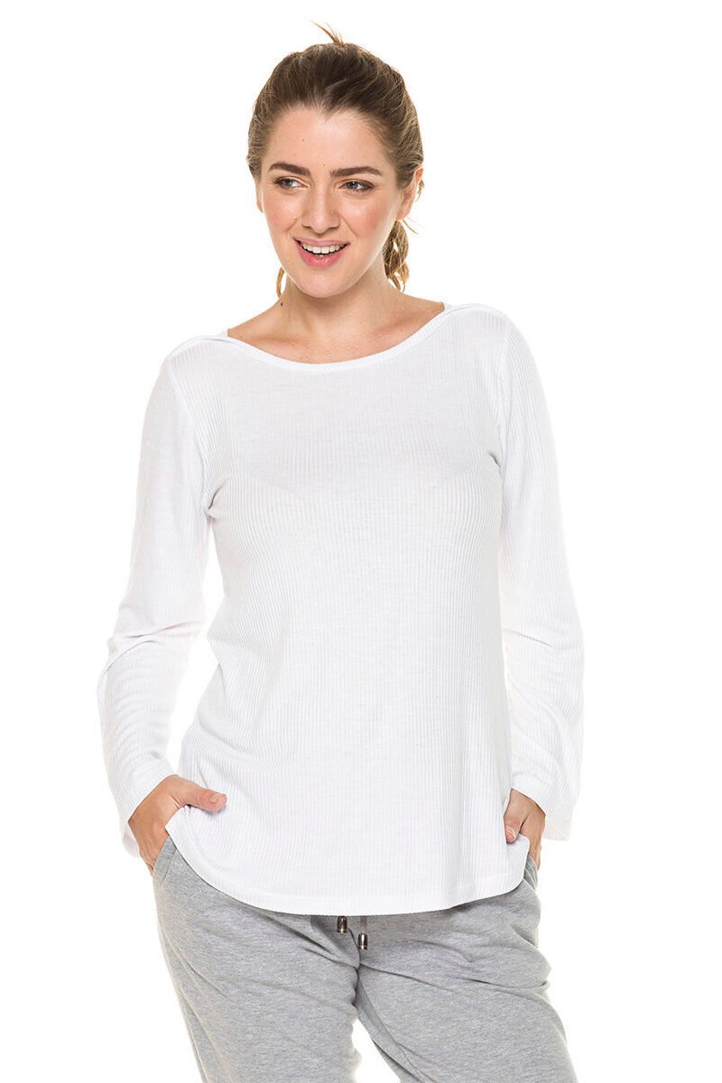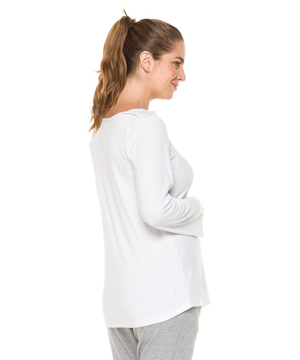 Remera de algodón y elastano con escote redondo . Es es entallada y larga a la cadera