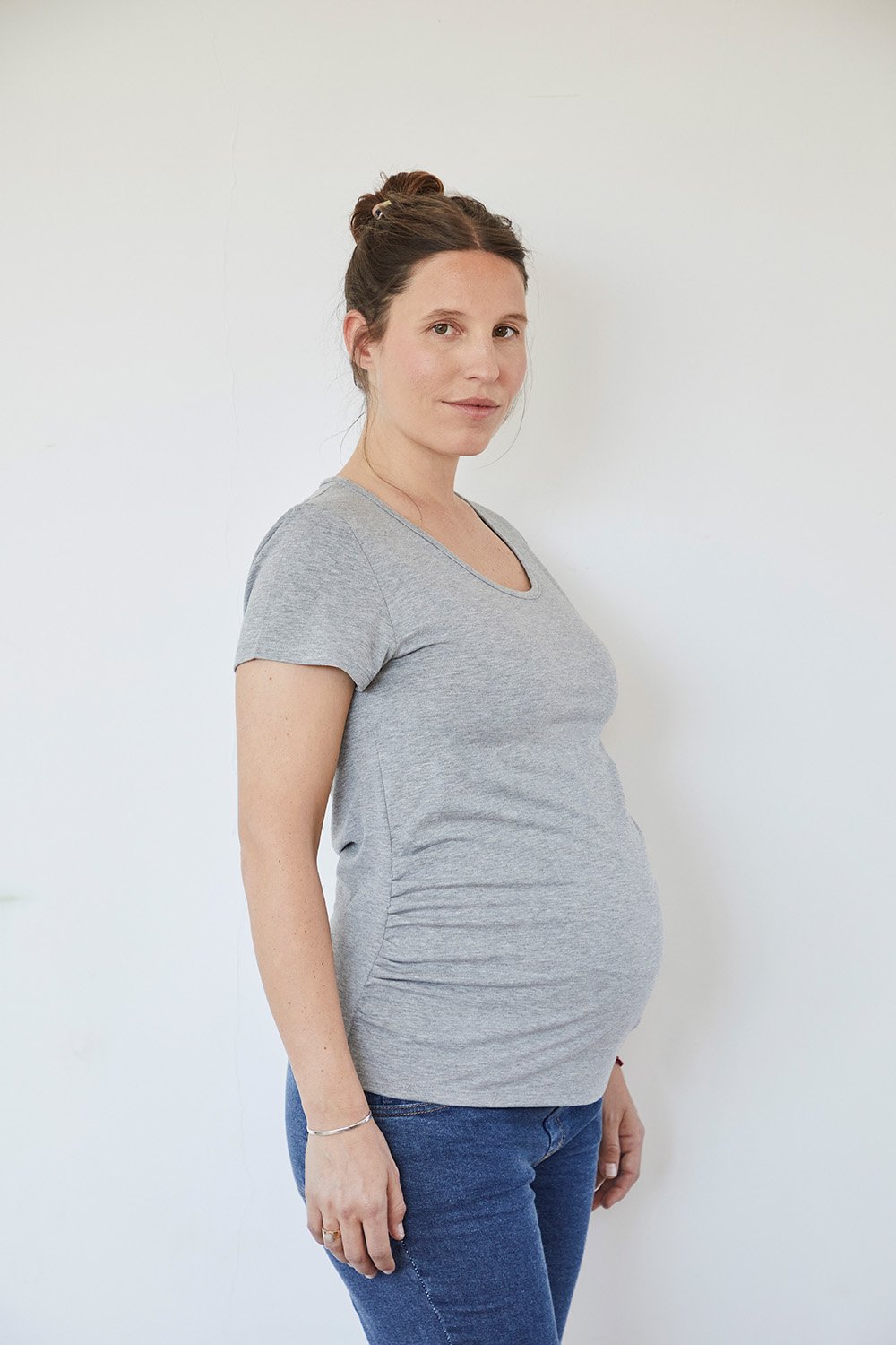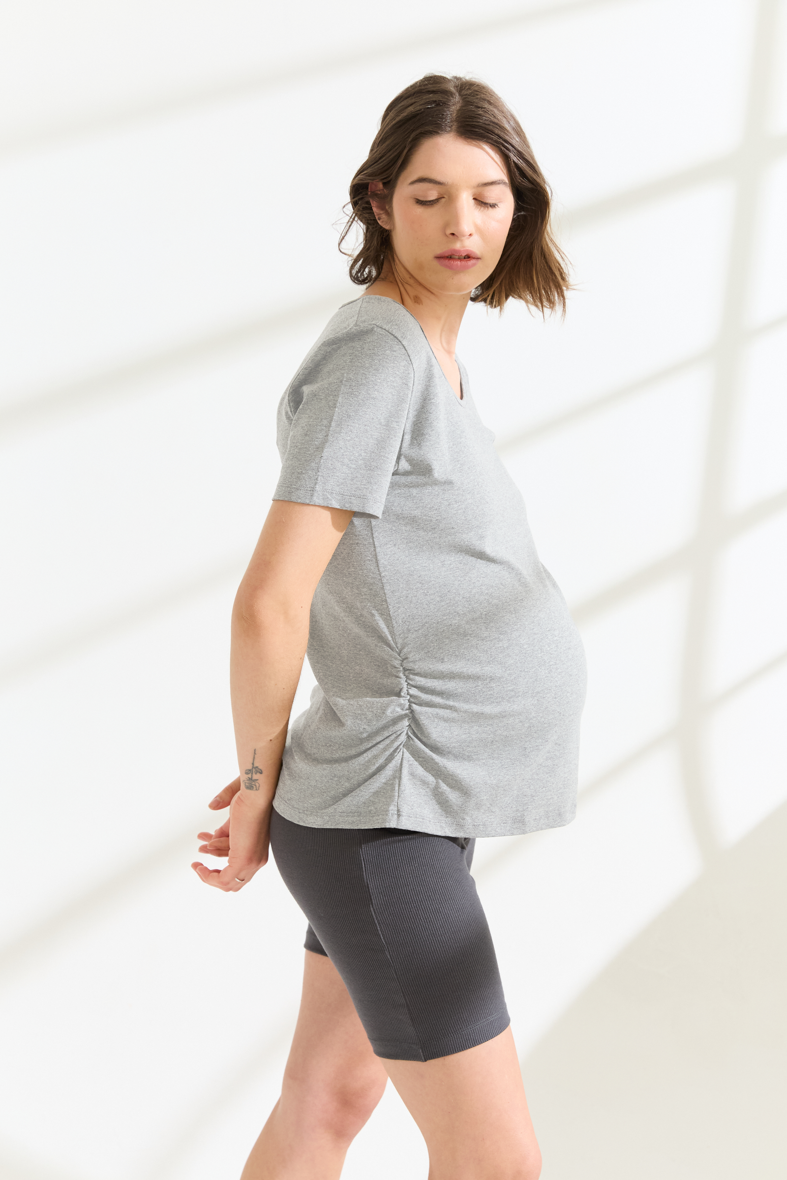Los pliegues laterales hacen que contenga la panza y estilice la figura durante el embarazo y también en el post parto.