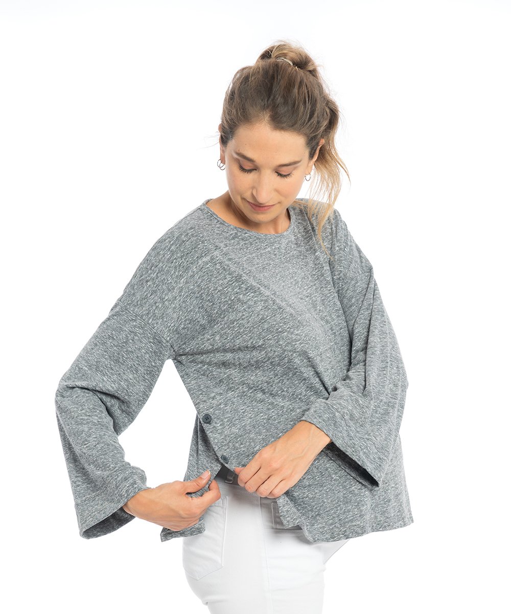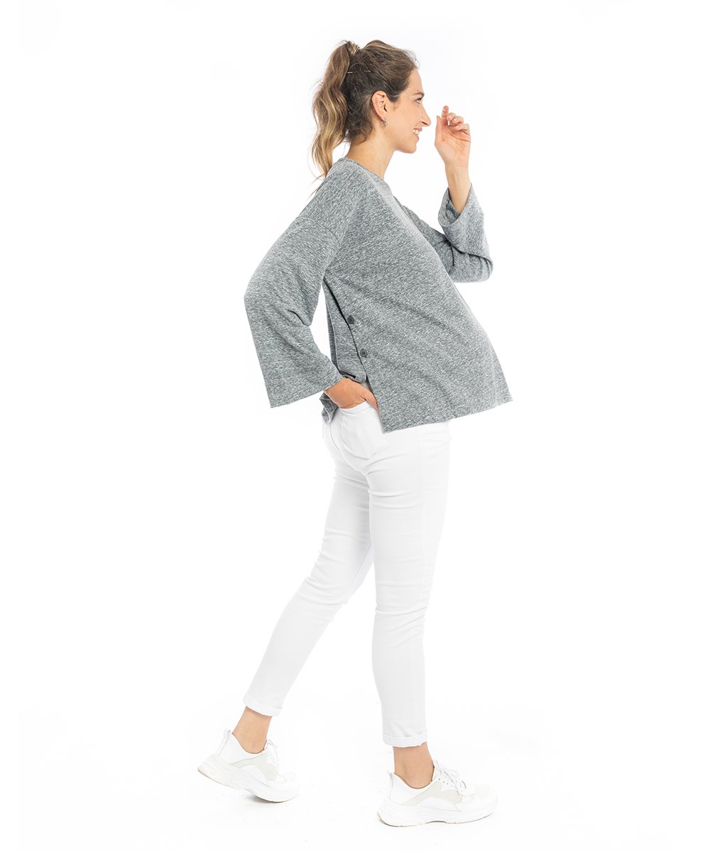 Aberturas laterales con botones apto lactancia.