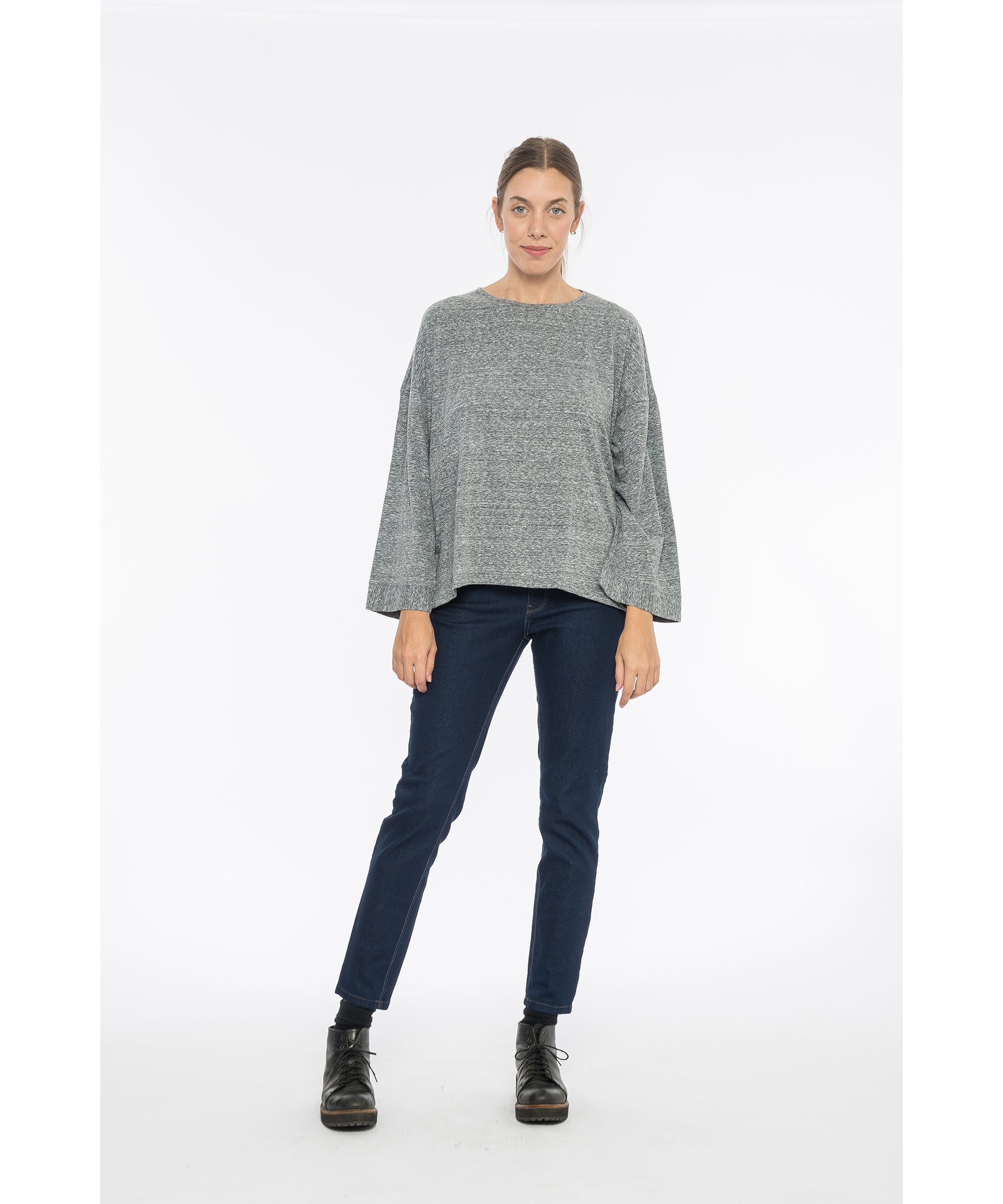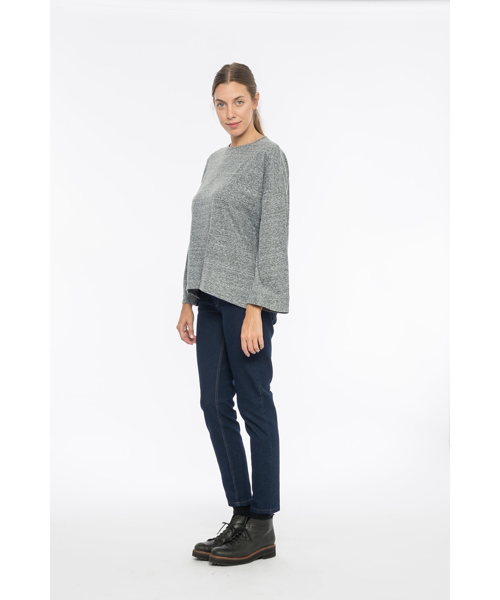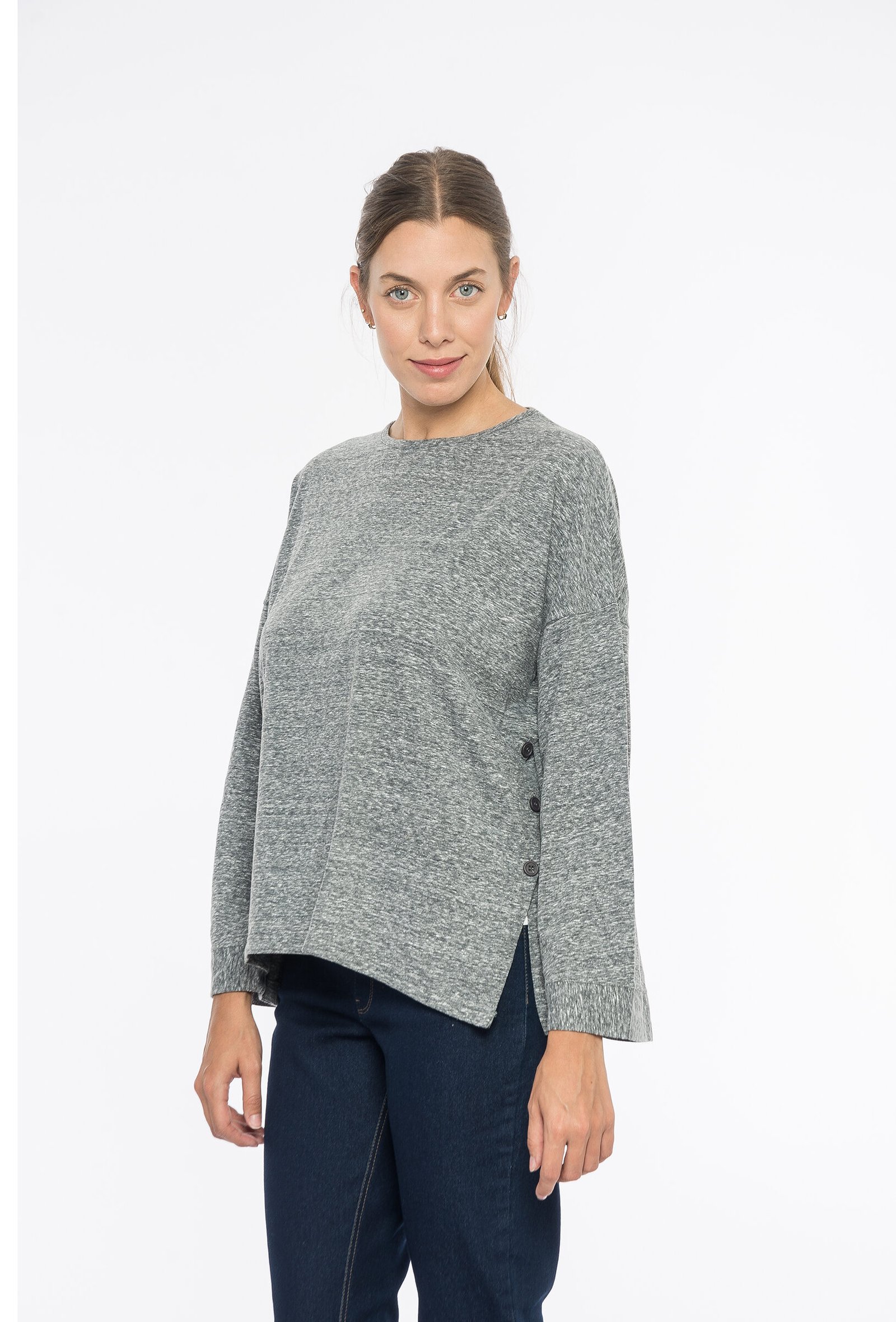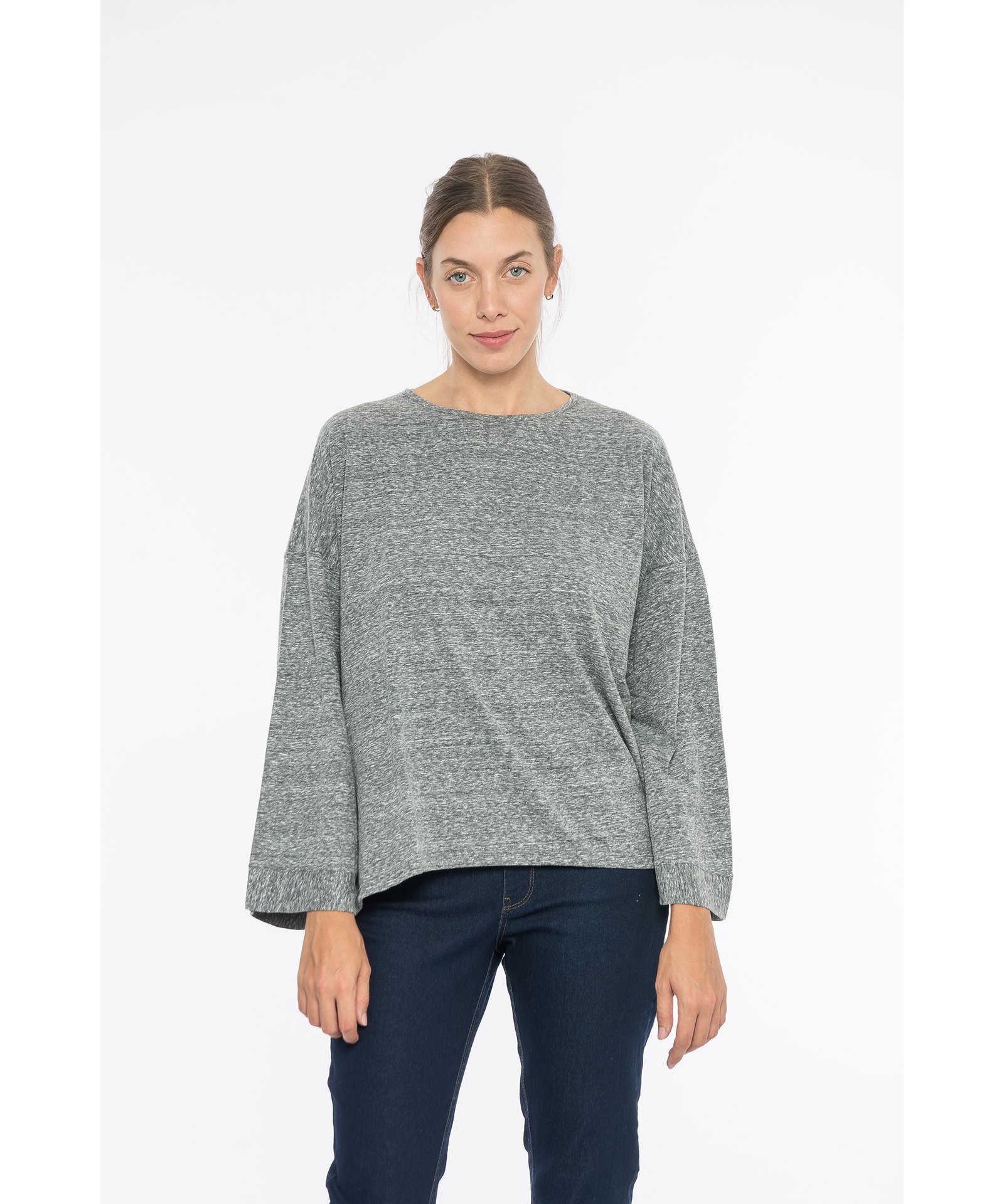 Remera manga larga de corte holgado, cuello a la base.