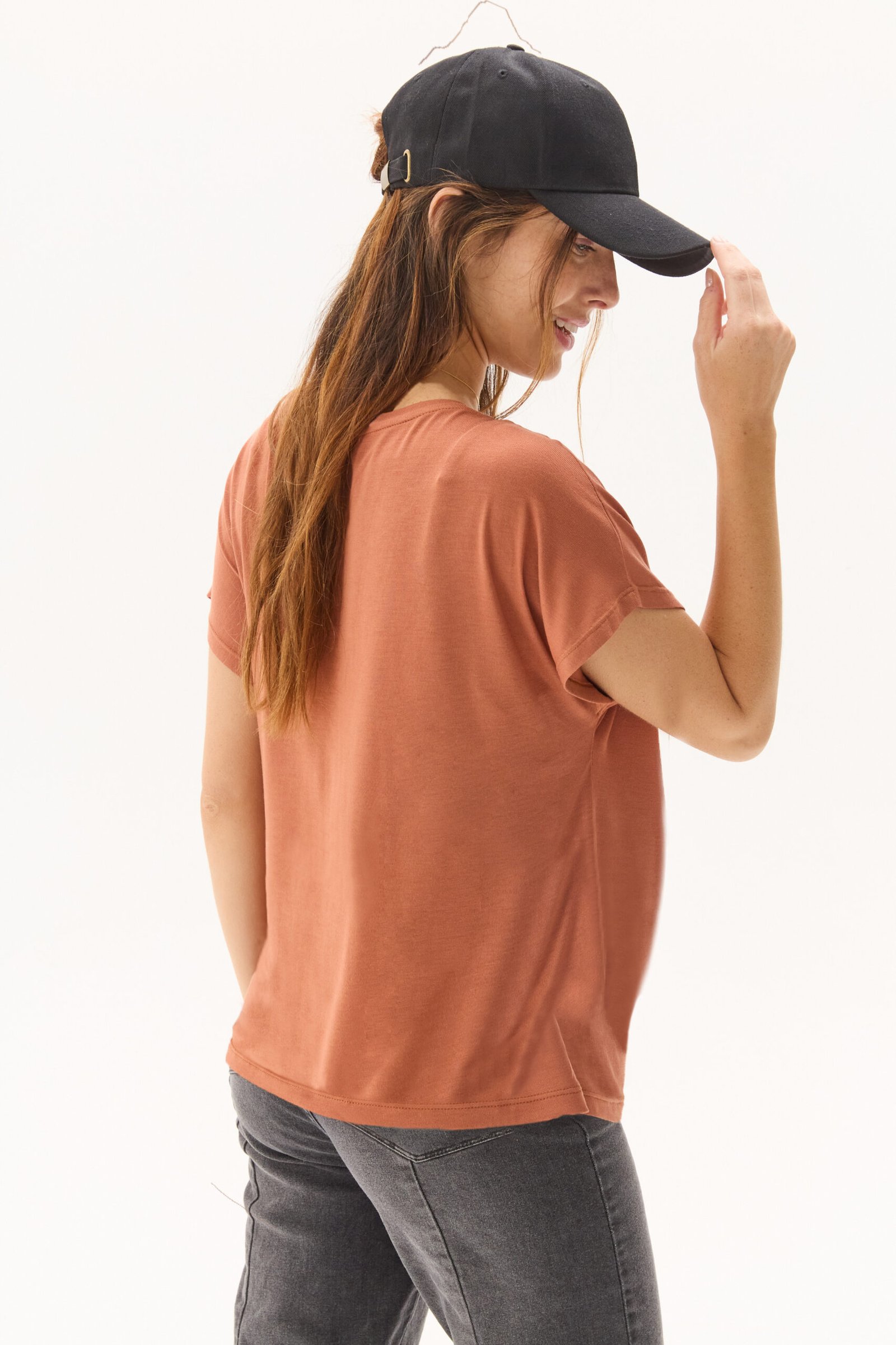Remera de jersey viscosa, de escote bote, manga japonesa con un calce fit.
