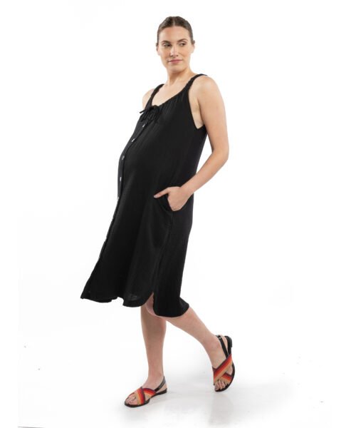 Jardinero de jean elastizado, chupín. Pechera con sistema de botón interior y 3 ojales para regular en cada estadío del embarazo y el post parto. Composición: 98% Algodón – 2% Elastano
